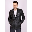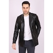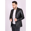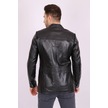 Erkek Siyah Hakiki Deri Yakalı Düğmeli Klasik Casual Mont