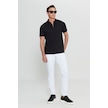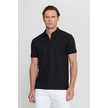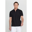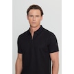 Erkek Sıyah Pamuklu Slim Fit Dar Kesim Fermuarlı Yaka Jakarlı Esnek Tişört Siyah