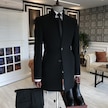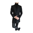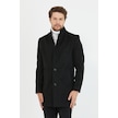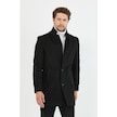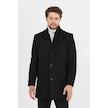 Erkek Siyah Slim Fit Dik Yaka Kaşe Kaban-Siyah
