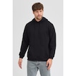 Erkek Siyah Standart Fit Normal Kesim Içi Polarlı 3 Iplik Kapüşonlu Pamuklu Sweatshirt Siyah