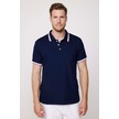 Erkek Slim Fit Dar Kesim %100 Pamuk Düz Pike Kol Şeritli Lacivert Polo Yaka Tişört-27689 Lacivert