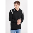 Erkek Slim Fit Dar Kesim Uzun Kol Polo Yaka Çizgili Siyah Kazak-35807 Siyah