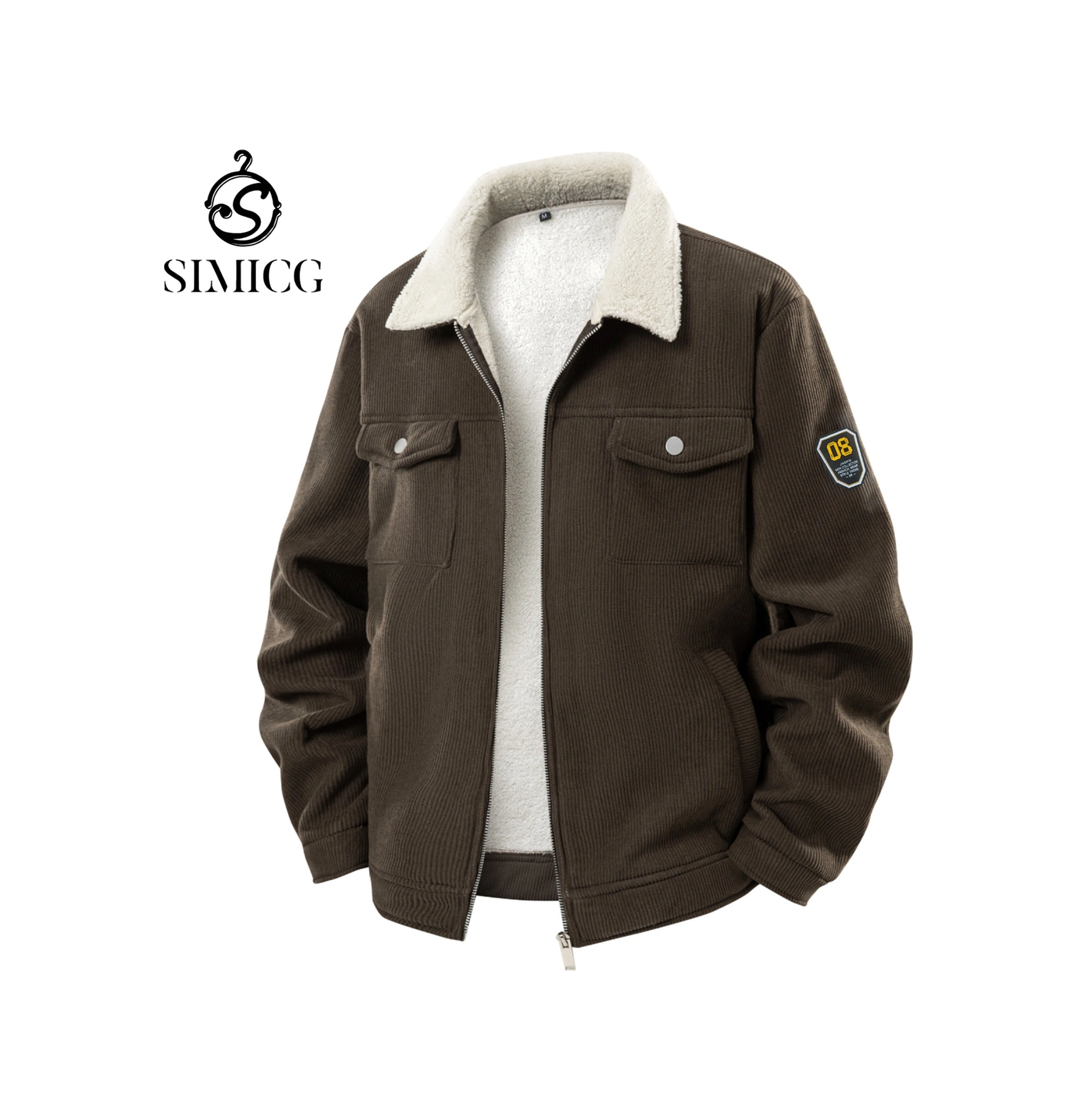 Erkek Sonbahar Ve Kış Kadife Ceket, Kadife Ve Kalın Yakalı İş Kıyafeti Kuzu Derisi Erkek Ceketi Kahve