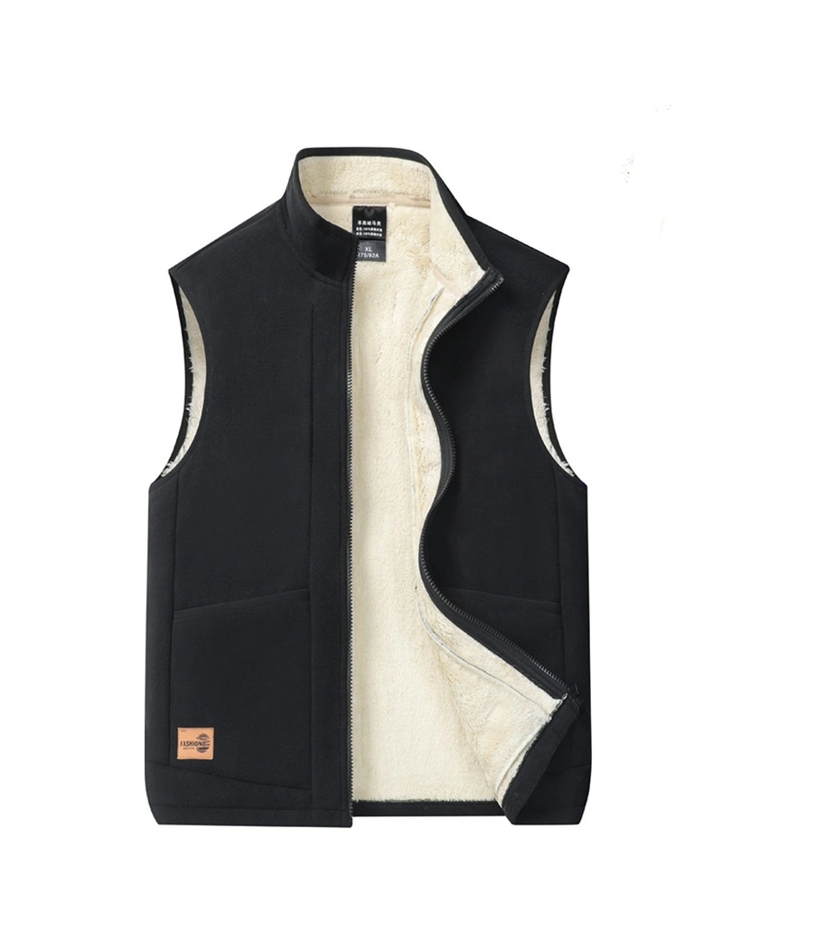 Erkek Sonbahar Ve Kış Kuzu Derisi Yelek Casual Plus Kadife Çift Taraflı Polar Sıcak Yelek Ceket Siyah