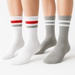 Erkek Spor Çorap 2 Li Set Pamuklu, Nefes Alan, Esnek Çizgili Model Gri Beyaz