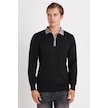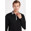 Erkek Standart Fit Uzun Kol Yarım Fermuarlı Polo Yaka Siyah Kazak-35798 Siyah