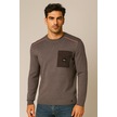 Erkek Triko Bisiklet Yaka Cep Detaylı Gri 3753 Gri