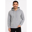 Erkek Üç İplik Kapüşonlu Tam Fermuarlı Kanguru Çepli Sweatshirt Hoodie - Gri Gri