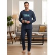 Erkek Uzun Kol Kışlık Pijama Takım Koyu Mavi