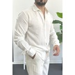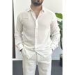Erkek Viskon Kumaş Uzun Kollu Gömlek Beyaz Edw391 Beyaz