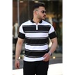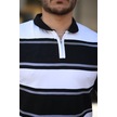 Erkek Yakalı Fermuarlı Çift Renk Kısa Kollu T-shirt Siyah