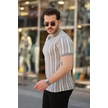 Erkek Yakalı Örme Kumaş Kısa Kollu T-shirt Gri - Beyaz