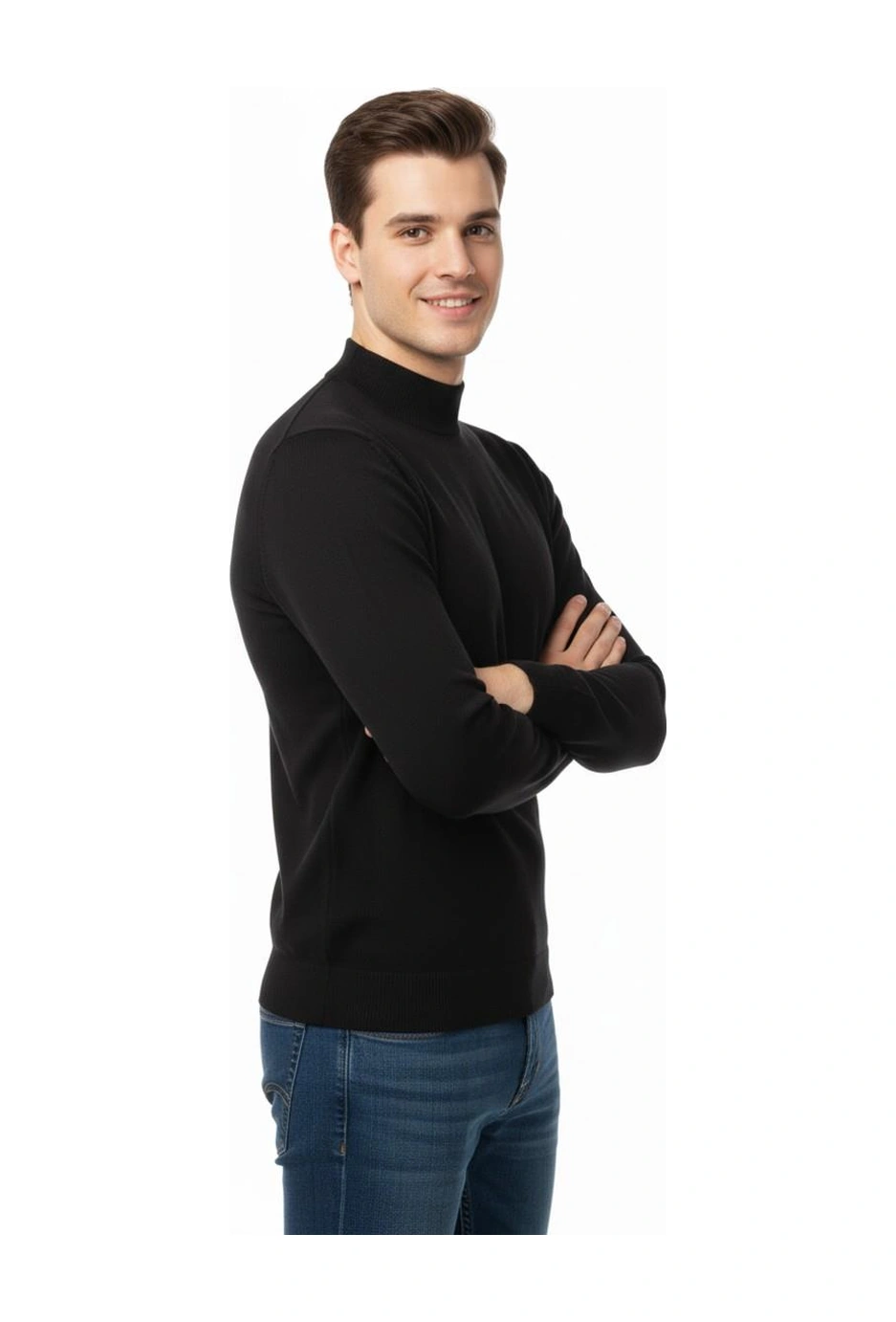 Erkek Yarım Balıkçı Kazak Çelik Örgü Regular Kalıp 4241b Bgl-st04854 Siyah