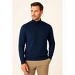 Erkek Yarım Boğaz Triko Kazak Yumuşak Dokulu Pamuklu İnce Dokuma, Uzun Kollu Rahat Regular Kalıp - Lacivert Siyah