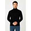 Erkek Yarım Boğaz Triko Kazak Yumuşak Dokulu Pamuklu İnce Dokuma, Uzun Kollu Rahat Regular Kalıp - Siyah Siyah