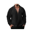 Erkek Yarım Fermuar Polar Kazak Üst Düz Renk Rüzgar Geçirmez Sonbahar Kış Uzun Kollu Yaka Kazak Siyah