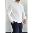 Erkek Yarım Fermuarlı Polo Yaka Mevsimlik Kazak Beyaz Edw195 Beyaz