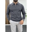 Erkek Yarım Fermuarlı Polo Yaka Mevsimlik Kazak Füme Edw195 Füme