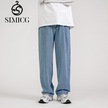 Erkekler İçin Amerikan Tarzı Bol, Çok Yönlü, Yere Kadar Uzanan Kot Pantolon Açık Mavi