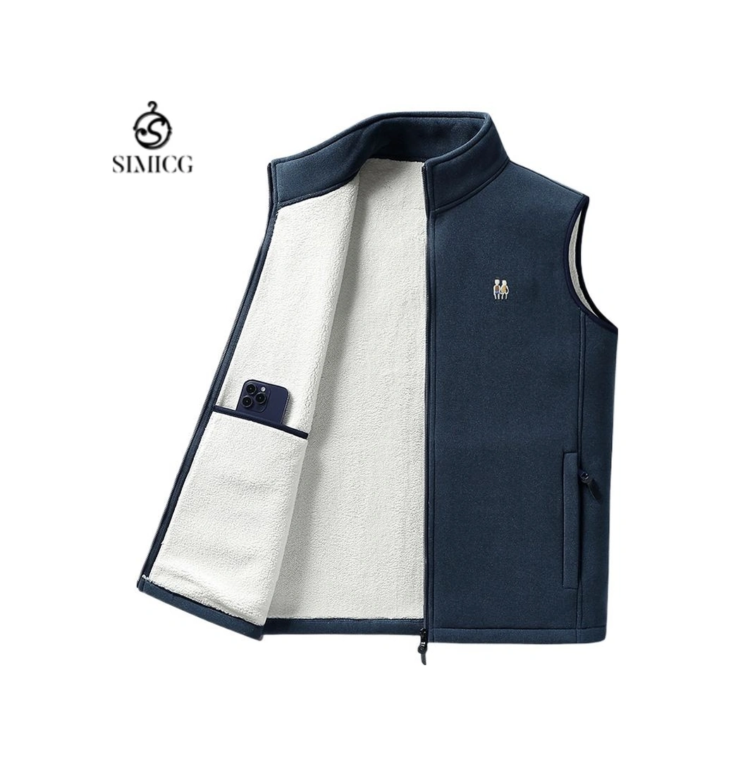 Erkekler İçin Günlük Artı Kadife Yelek Sonbahar Ve Kış Dik Yaka Yelek Ceket Sıcak Yelek Mavi