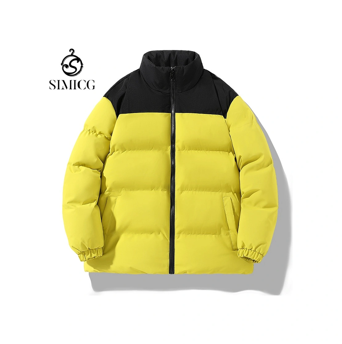 Erkekler İçin Kışlık Sıcak Kalın Rüzgar Geçirmez Şişme Ceket Dik Yaka Pamuklu Ceket Sarı