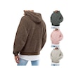 Erkekler Kalın Polar Peluş Sıcak Hoodie Kazak Kış Peluş Kürk Kapşonlu Tişörtü Siyah