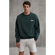 Ernest Erkek Organik Pamuklu Yumuşacık Baskı Detaylı Bisiklet Yaka Içi Polarlı Koyu Yeşil Sweatshirt