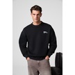 Ernest Erkek Organik Pamuklu Yumuşacık Baskı Detaylı Bisiklet Yaka İçi Polarlı Siyah Sweatshirt