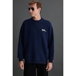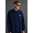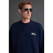 Ernest Erkek Yumuşacık Içi Polarlı Baskı Detaylı Organik Pamuk Oversize Lacivert Sweatshirt