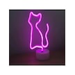 Eşe Sevgiliye Güzel Romantik Hediye Neon Işıklı Kedi Lamba Usb Ka Pembe