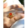 Esha Store Doğal Taş Akik Doğal Taşlı Çiçek Model Telkari Kadın Ayarlanabilir Altın Kaplama Yüzük Euy61ag Kırmızı