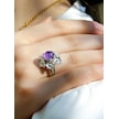 Esha Store Doğal Taş Ametist Doğal Taşlı Çiçek Model Telkari Kadın Ayarlanabilir Gümüş Kaplama Yüzük Euy61amtr MOR