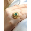 Esha Store Doğal Taş Yeşil Akik Doğal Taşlı Yıldız Model Telkari Kadın Ayarlanabilir Altın Kaplama Yüzük Euy60y Yeşil