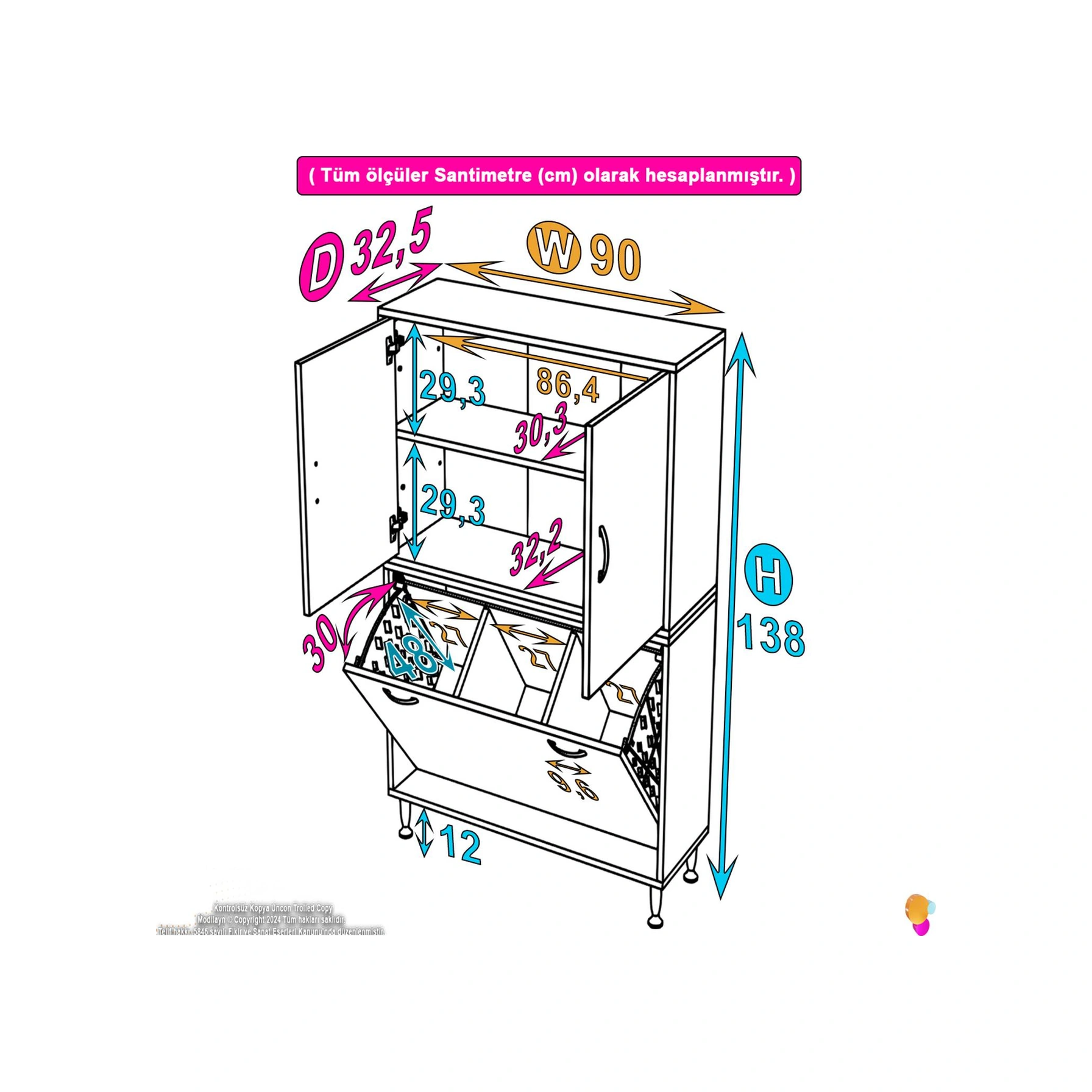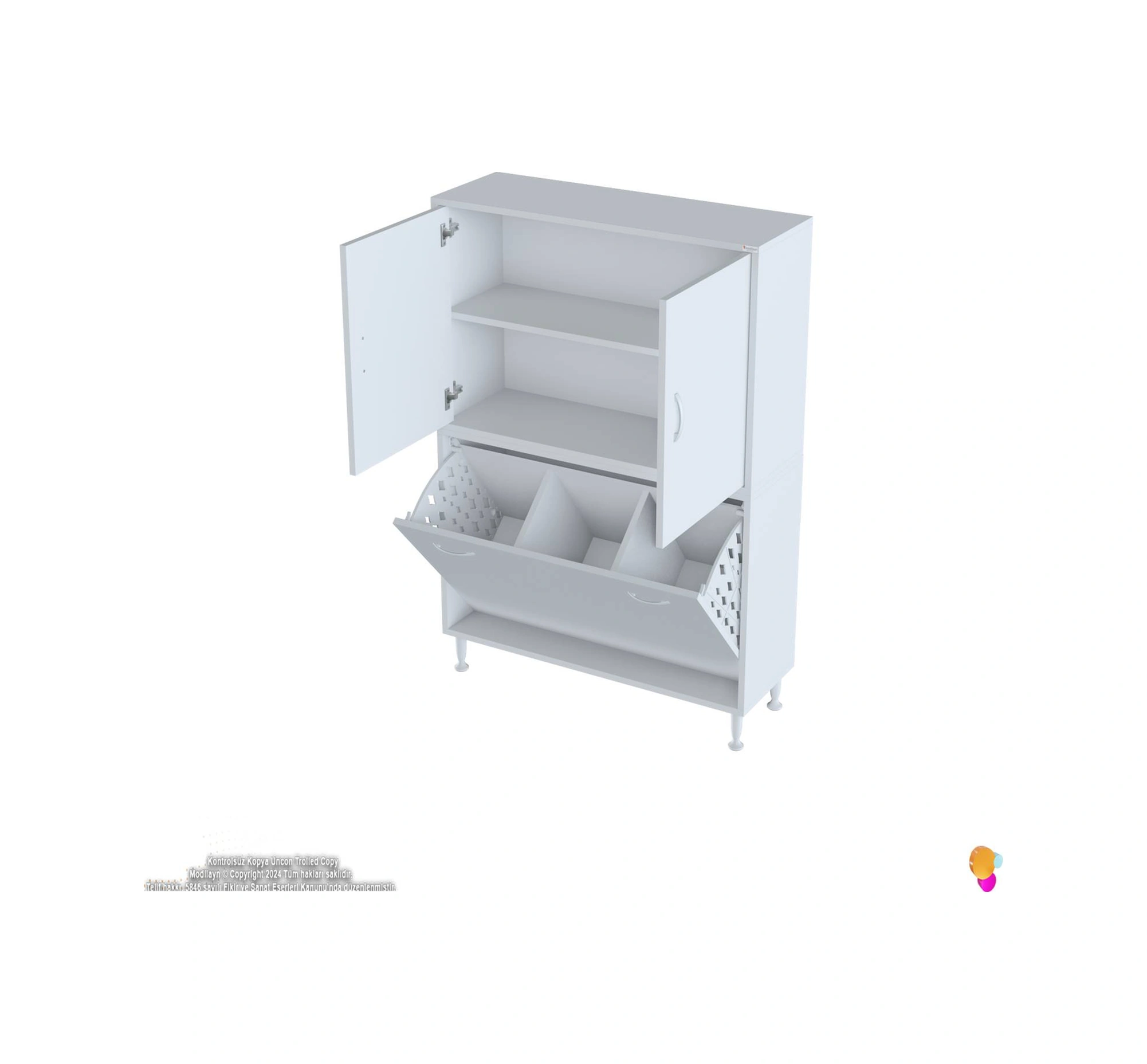 Esil Çok Amaçlı Dolap Kapak İçi Çift Raflı, Üç Akıllı Çamaşır Sepetli Dolap 90x138x32,5 Cm Beyaz