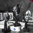 Eskitme Gümüş Soyut El Yüz Biblo Heykel Dekoratif Obje Seti