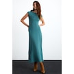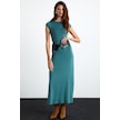 ESLY Kadın Viskon Karışımlı Kayık Yaka Slim Fit Yeşil Elbise