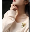 Mineli Turkuaz Ve Krem Balık Figürlü Gold Renk Kadın Broş