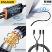 Essager 1.2 Metre 100w 2in1 Type C To 2x Type C Şarj Ve Data Kablosu, Çift Cihaz Desteği, Dayanıklı Örgülü Tasarım,