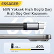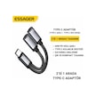 Essager 2in1 Type-c Adaptör 60w Hızlı Şarj + Type C Kulaklık Çıkışı, Hifi Ses Ve Hızlı Şarj Adaptörü Gri