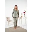Estiva Çizgili Önden Düğmeli Kadife Bayan Pijama Takım Haki