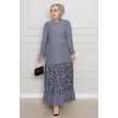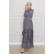 Eteği Desenli Karin Elbise-gri-4273-gri Gri