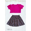Etekli Crop Takım, Bürümcük Etek - Pamuklu Fuşya Crop Fuşya-bürümcük Fuşya