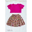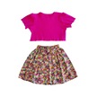 Etekli Crop Takım, Pamuklu Çiçekli Etek - Pamuklu Fuşya Crop Fuşya-çiçekli1 Fuşya