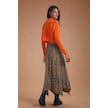 Etnik Desenli Biye Detaylı Asimetrik Kesimli Etek Yeşil