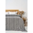 Etno Antrasit Çift Kişilik %100 Pamuklu Müslin Pike & Yatak Örtüsü Antrasit