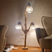 Ev Ofis İçin Uzun Ahşap Sarı Ledli 3 Ampul Lambader Aplik Abajur