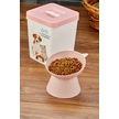 Evcil Hayvan Kedi Ve Köpek Mama Saklama Kabı & Mama Kabı Seti Kürek Hediyeli 3'lü Set - Pembe