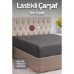 Eve Tekstil Fitted Yüksek Kaliteli Penye Kumaş Tek Kişilik Lastikli Çarşaf Koyu Gri