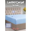 Eve Tekstil Fitted Yüksek Kaliteli Penye Kumaş Tek Kişilik Lastikli Çarşaf Mavi
