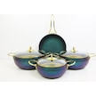 Evita 7 Parça Granit Cam Kapaklı Küre Güveç Tencere Seti Yeşil
